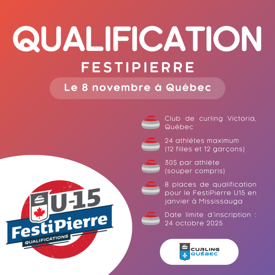 Curling Québec est heureux d’annoncer le lancement des inscriptions pour la première qualification en personne du FestiPierre U15, un événement présenté par Curling Canada pour les jeunes athlètes individuels. Dates…