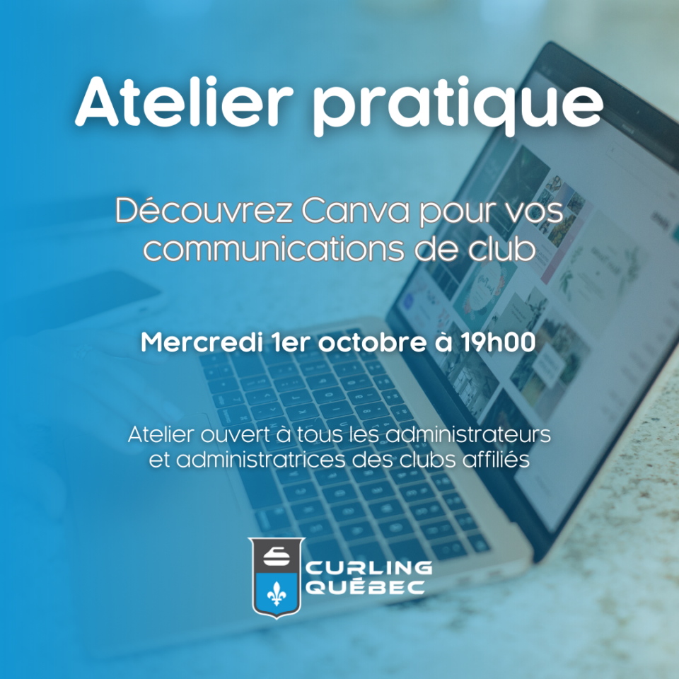 Curling Québec est fier d’offrir à ses clubs affiliés un nouveau webinaire gratuit qui leur permettra de découvrir et de maîtriser Canva, un outil de conception graphique simple, intuitif et…